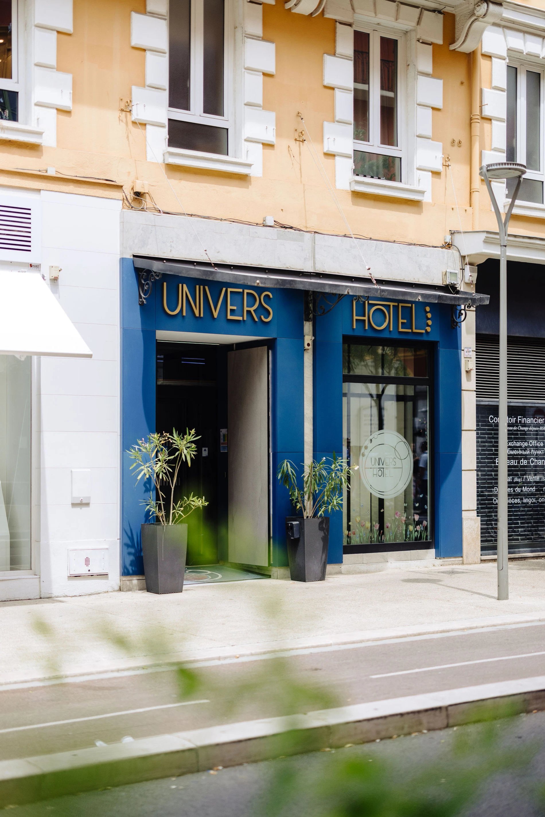 C'est à l'angle de l'incontournable avenue Jean Médecin et à une centaine de mètres de la place Masséna que se niche l'hôtel Univers, pied à terre de charme idéal pour profiter des animations Niçoises à portée de main.